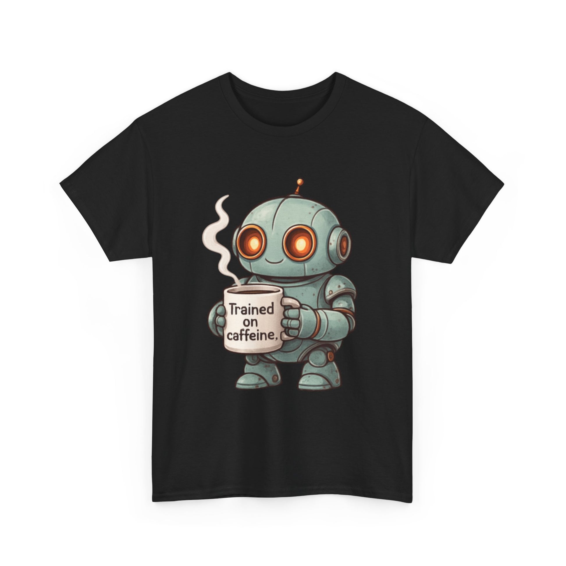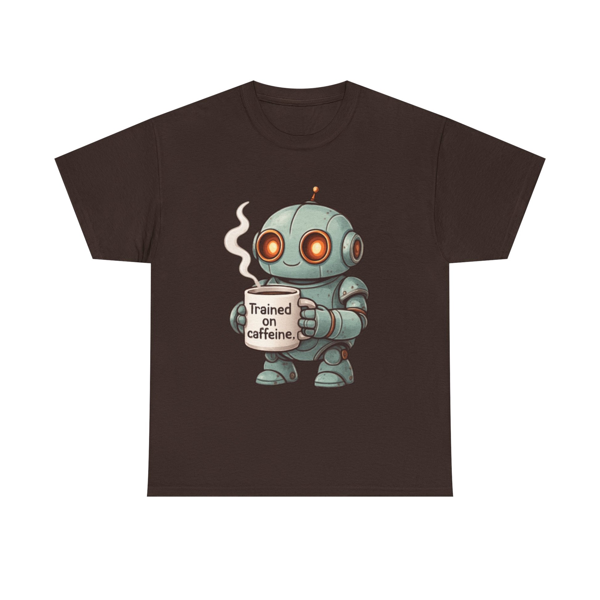 Caffeinated Robot Tee - Fun Graphic T-Shirt, Gift for Coffee Lovers, Retro Robot Design, Unisex Cotton Tee, Casual Everyday Wear